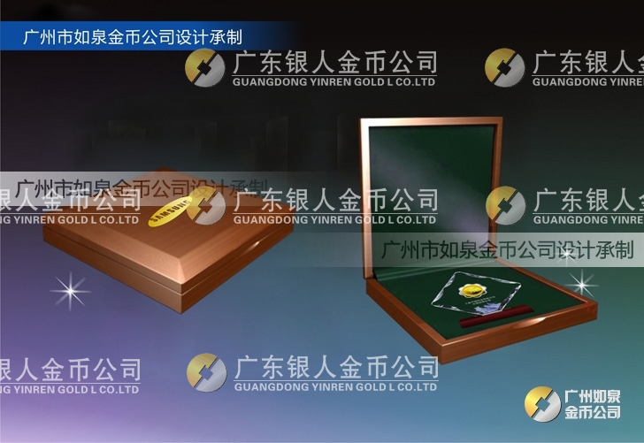 定制三星公司水晶擺件鑲純銀包純金紀(jì)念幣定制