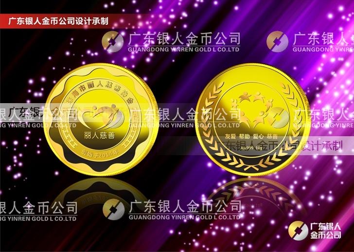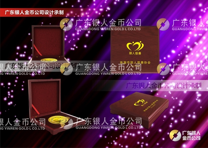 珠海麗人慈善會純金千足金黃金金牌定制、純金銀牌定制