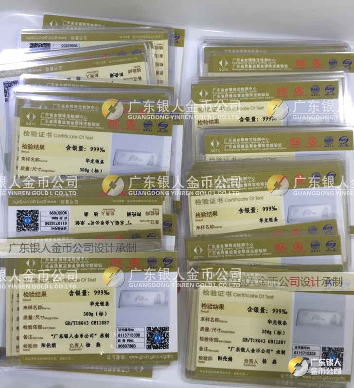 廣東銀人金幣公司承接客戶個性化定制的金銀幣、金銀章、金銀條、金銀牌、金銀盤均由國家質(zhì)監(jiān)部門、嚴格檢測、權(quán)威鑒定:
