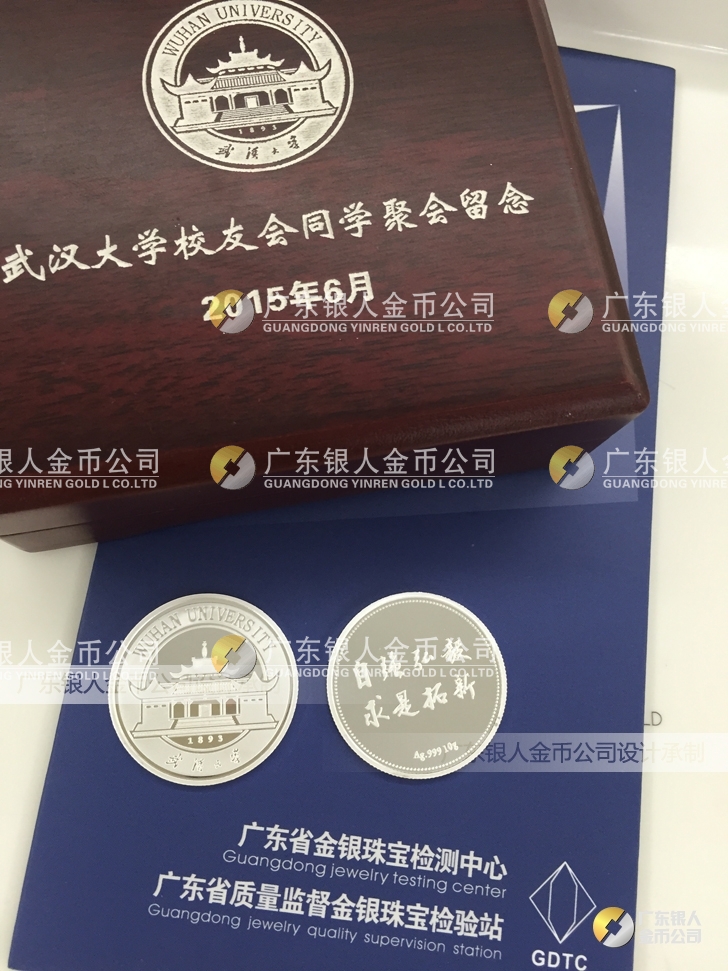 武漢大學(xué)同學(xué)畢業(yè)三十周年聚會留念慶祝活動紀念銀幣定做、純銀紀念幣定制