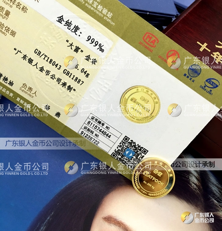 廣東銀人金幣公司承接客戶個(gè)性化定制的金銀幣、金銀章、金銀條、金銀牌、金銀盤均由國(guó)家質(zhì)監(jiān)部門、嚴(yán)格檢測(cè)、權(quán)威鑒定: