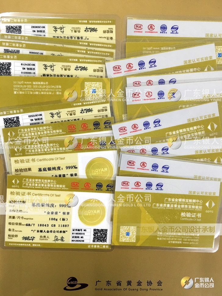 廣東銀人金幣公司承接客戶個性化定制的金銀幣、金銀章、金銀條、金銀牌、金銀盤均由國家質(zhì)監(jiān)部門、嚴(yán)格檢測、權(quán)威鑒定:
