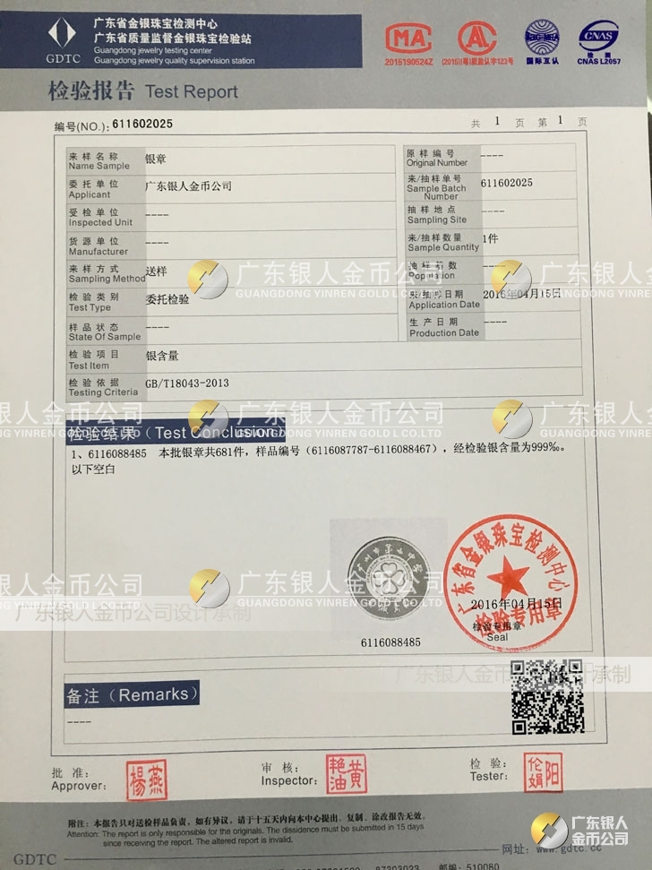 【金銀品質】 國家檢測鑒定、真假防偽查詢