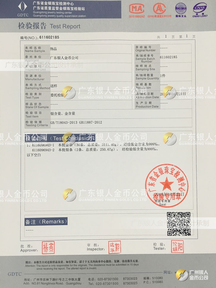 【金銀品質】 國家檢測鑒定、真假防偽查詢