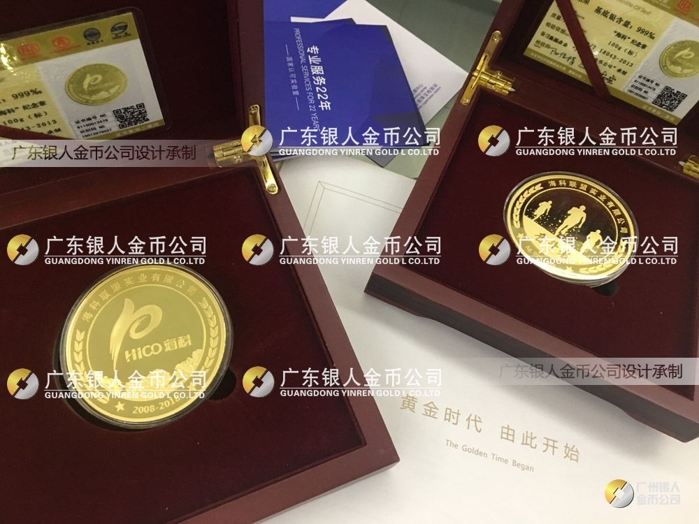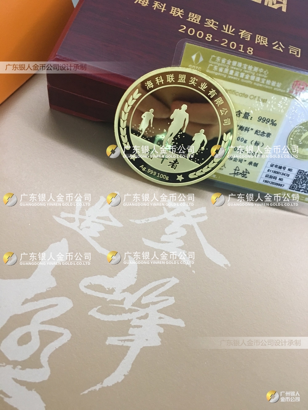 大連海科聯盟主攻房地產、醫院、樓盤導向標識、標牌工程項目,委托我司設計制作公司10周年金銀幣定制。