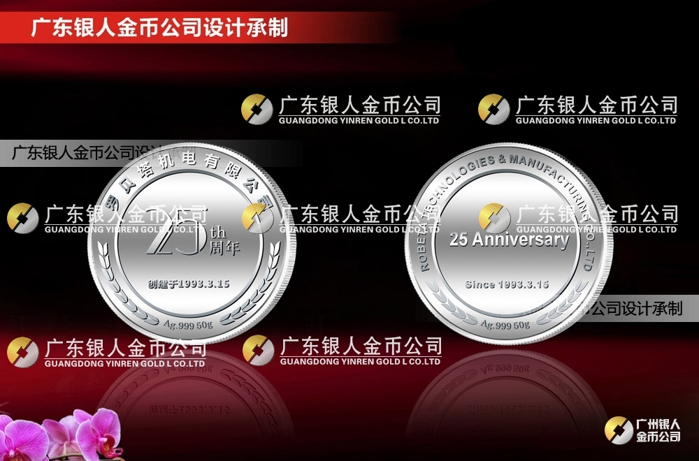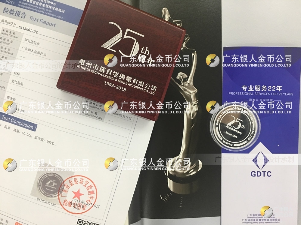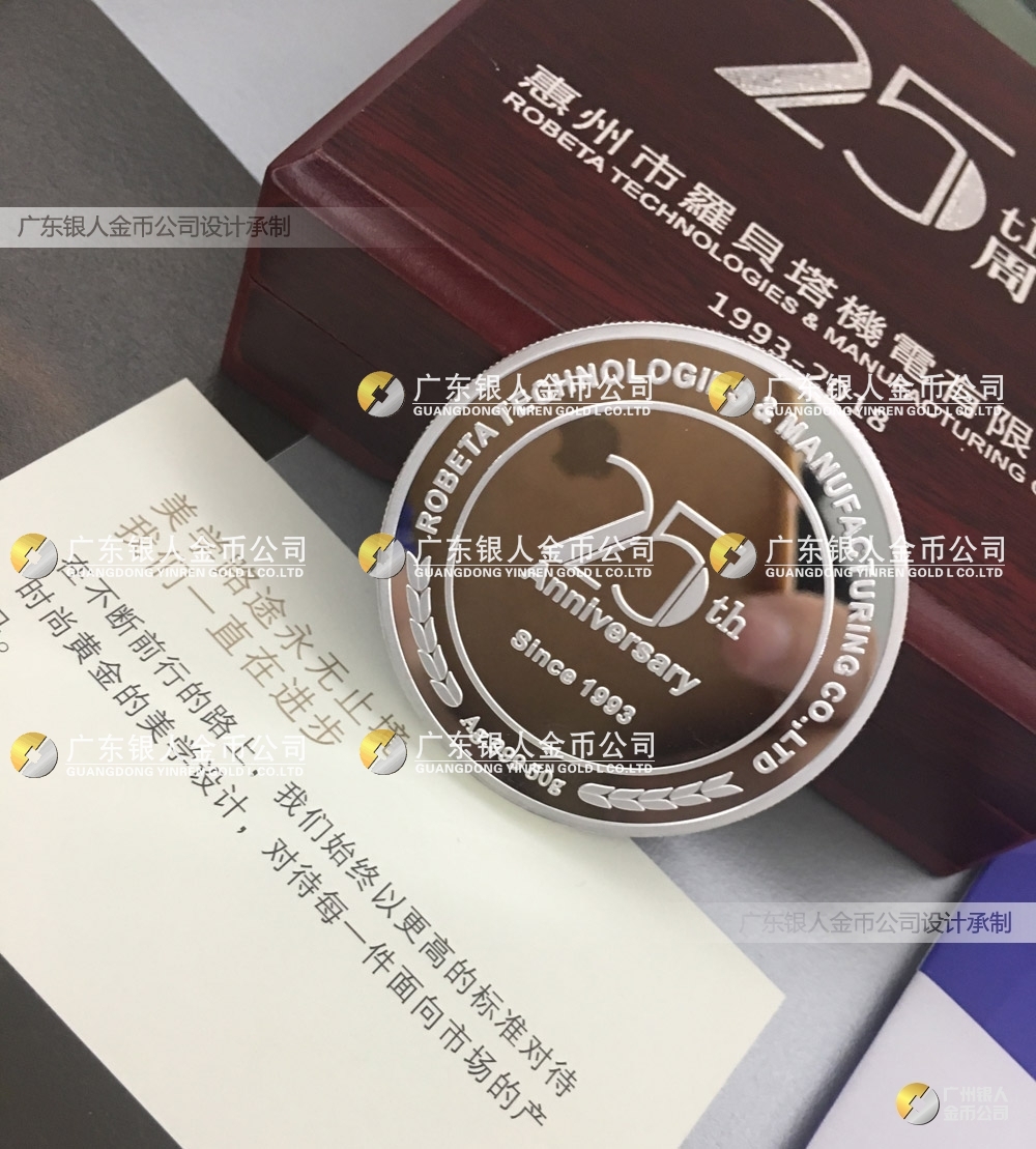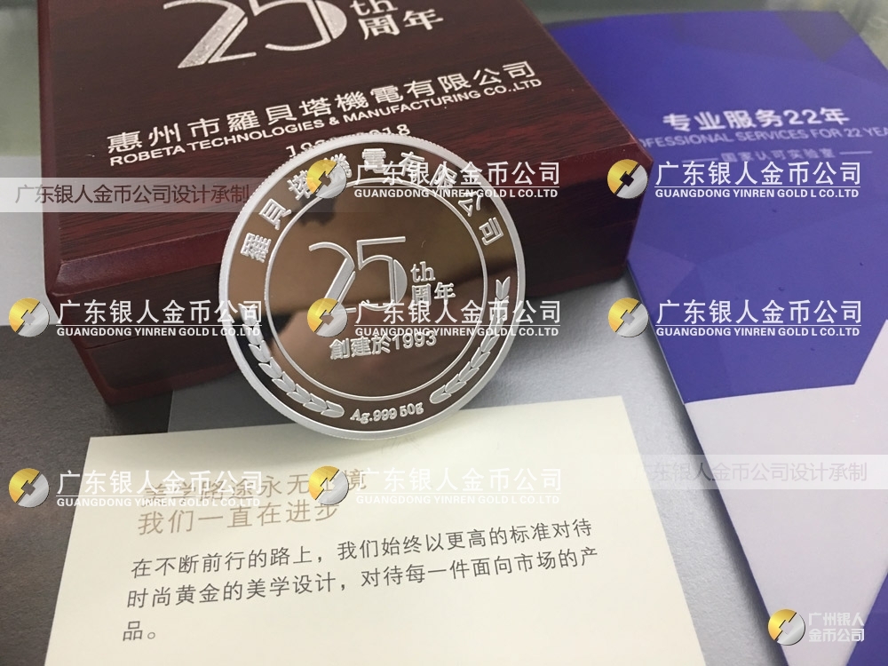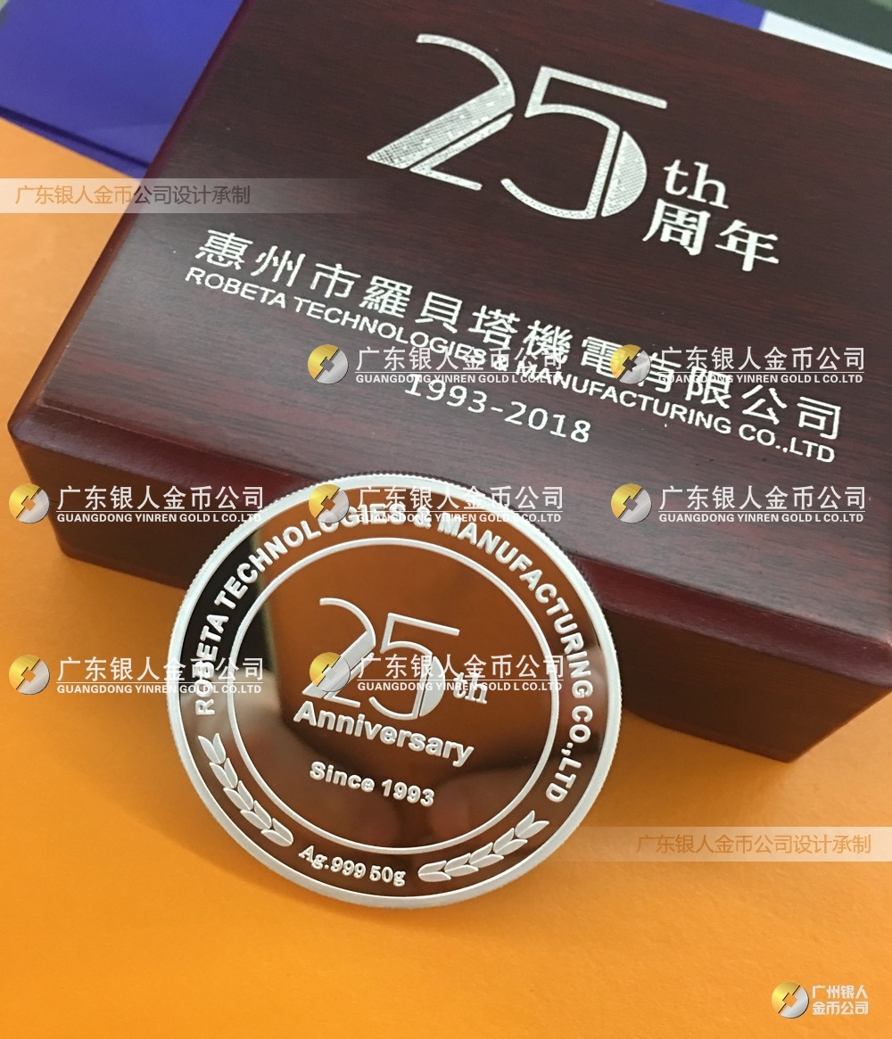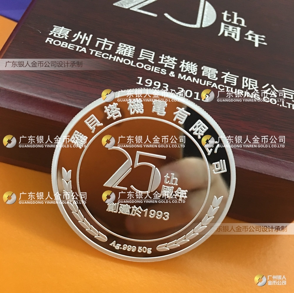創(chuàng)建于1993年的機電行業(yè)品牌羅貝塔,為工業(yè)自動化設備領先企業(yè),特此委托我司定制慶祝公司成立25周年紀念銀幣。