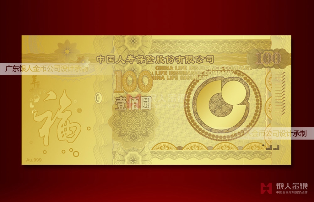 廈門金鈔定制_中國人壽保險公司紀念金鈔定制_金鈔銀鈔定制_金銀禮品定制