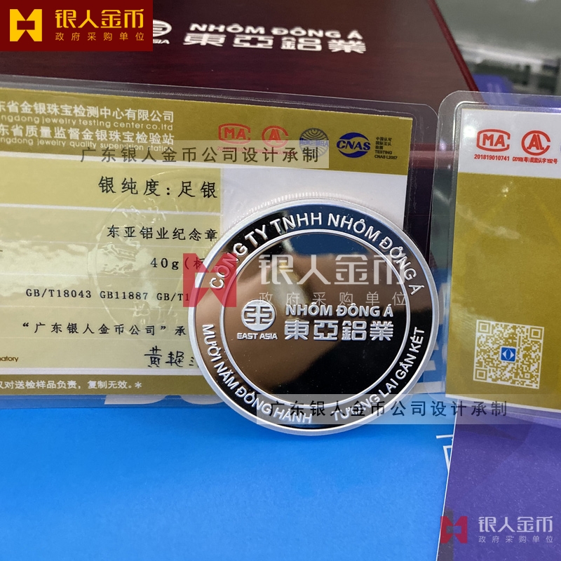 東亞鋁業集團在創業十年后恰逢公司成立10周年紀念慶典、委托定制純金銀紀念幣1200枚。