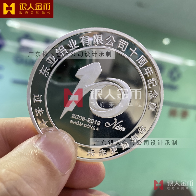 東亞鋁業集團在創業十年后恰逢公司成立10周年紀念慶典、委托定制銀幣紀念幣1200枚。