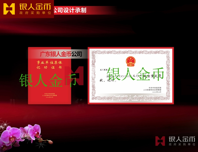 【證書制作】 廣東銀人金幣公司-榮譽證書制作廠家