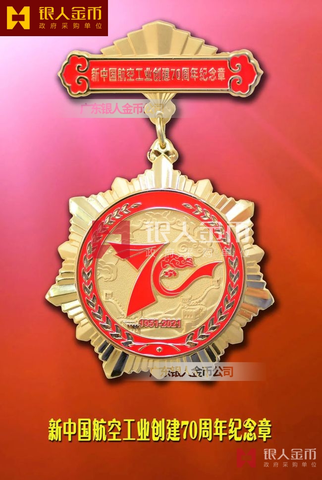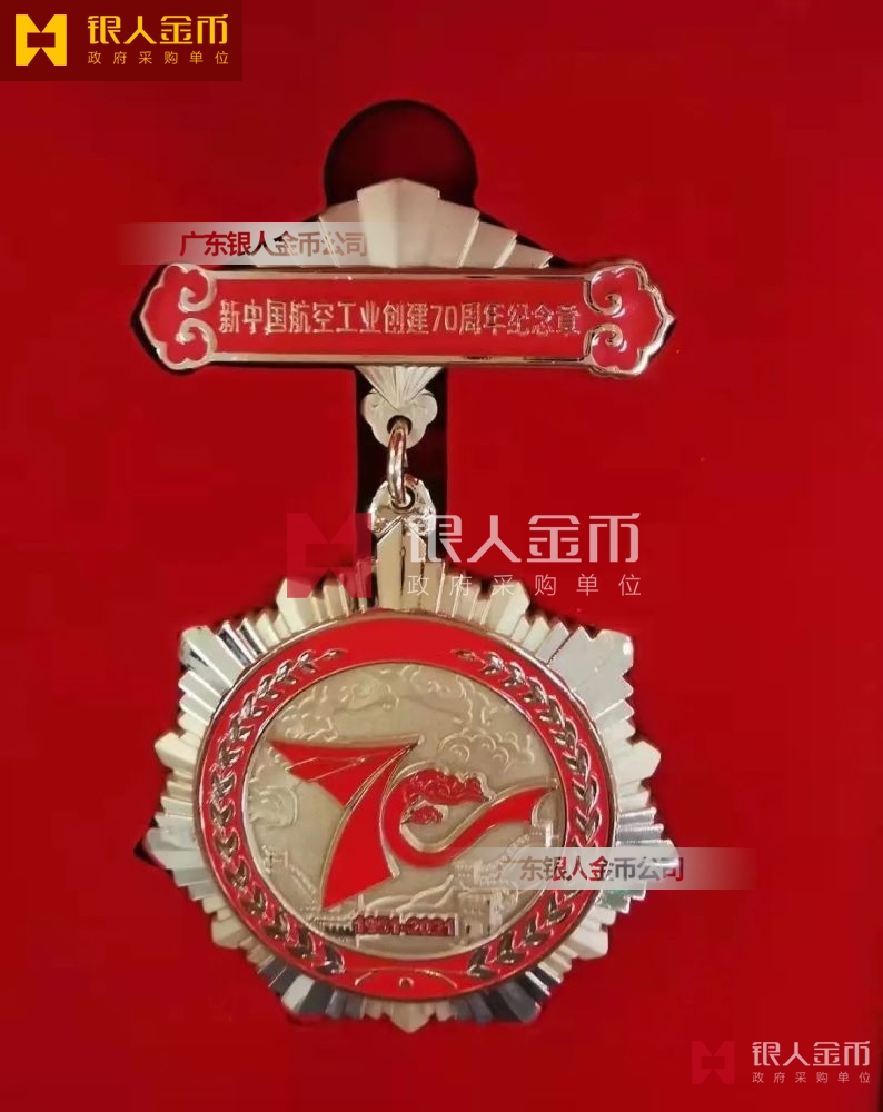 為慶祝黨領(lǐng)導(dǎo)新中國航空事業(yè)發(fā)展70周年,航空?qǐng)?bào)國、航空強(qiáng)國。集團(tuán)公司為全體在職人員頒發(fā)航空?qǐng)?bào)國、航空強(qiáng)國企業(yè)文化下的中航工業(yè)70周年紀(jì)念章、為離休人員頒發(fā)、退休人員頒發(fā)定制了“新中國航空工業(yè)創(chuàng)建70周年”紀(jì)念章。