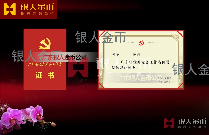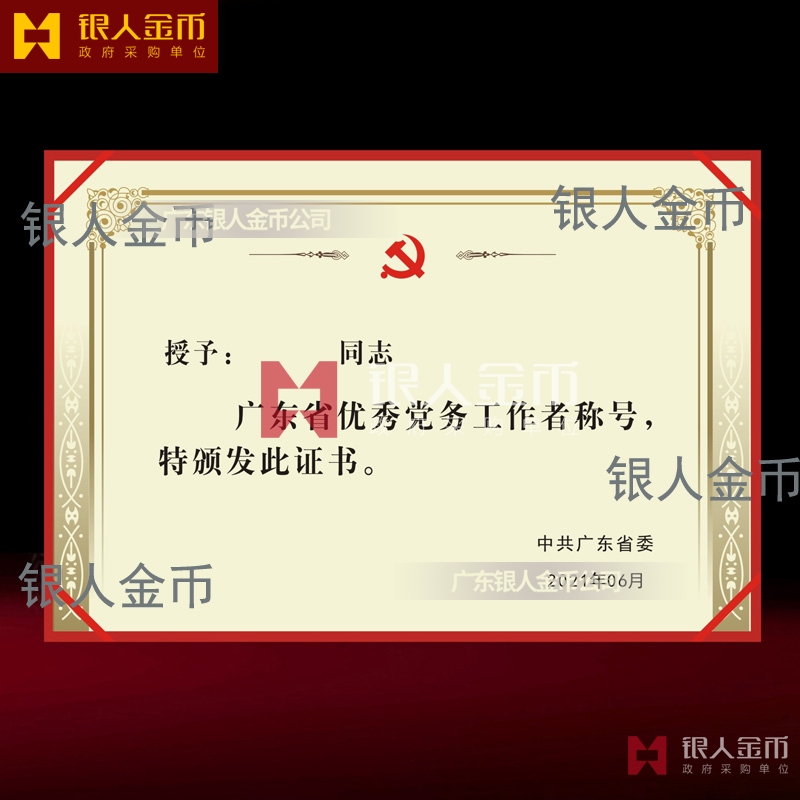 中共廣東省委組織部優(yōu)秀黨務(wù)工作者榮譽(yù)證書_全省優(yōu)秀黨務(wù)工作者獎勵證書_廣東省優(yōu)秀黨務(wù)工作者榮譽(yù)稱號榮譽(yù)獲獎證書兩優(yōu)一先獎牌獎?wù)伦C書