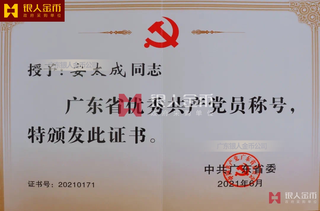 【證書制作】 廣東銀人金幣公司-獎勵證書制作廠家
