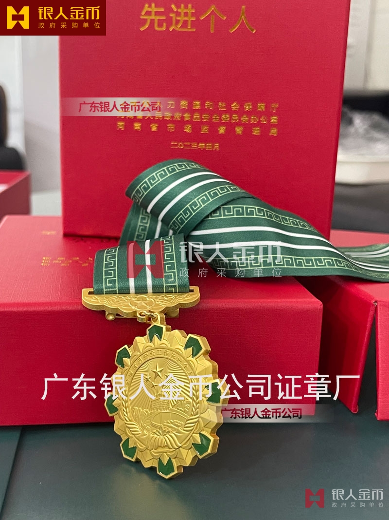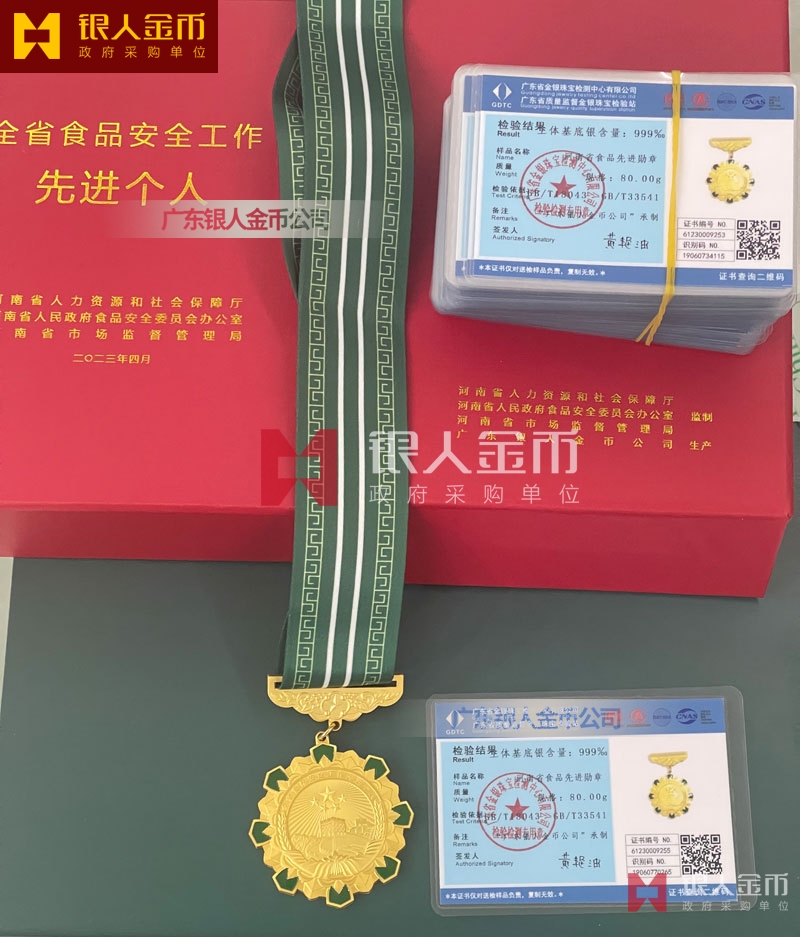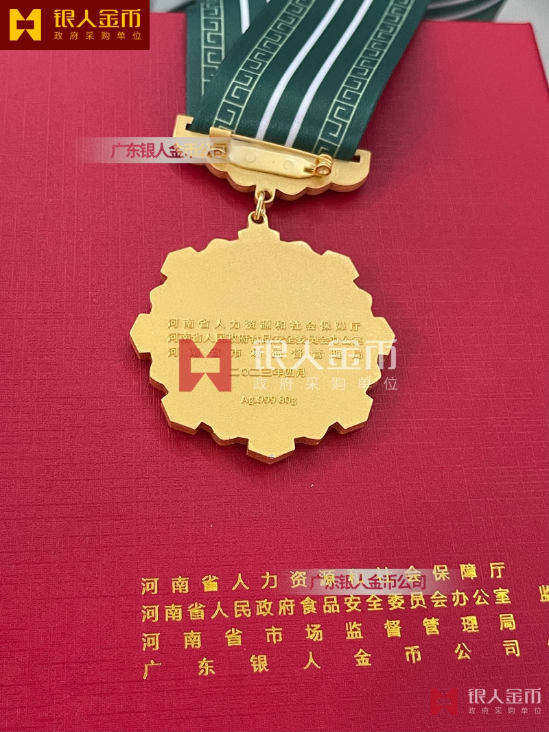 河南省政府食品安全工作先進個人獎章定制_表彰獎勵勛章定制_工商市場監管局單位獎牌獎章定制_市場監督管理局證章定制定做制作