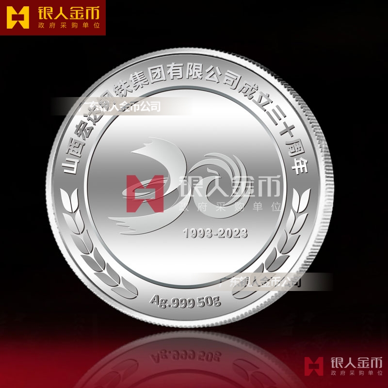 山西宏達鋼鐵集團公司成立三十周年紀念章定制_企業周年慶純金銀紀念章定制_公司年會純金章定制_集團年會純銀章定制