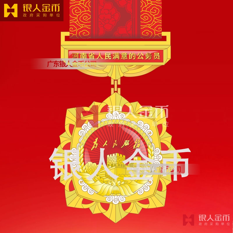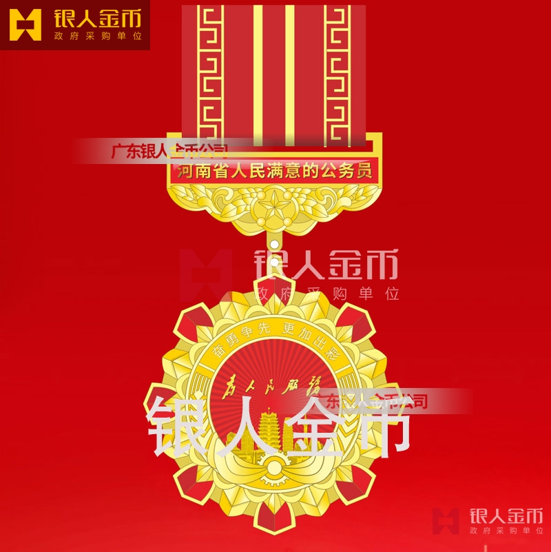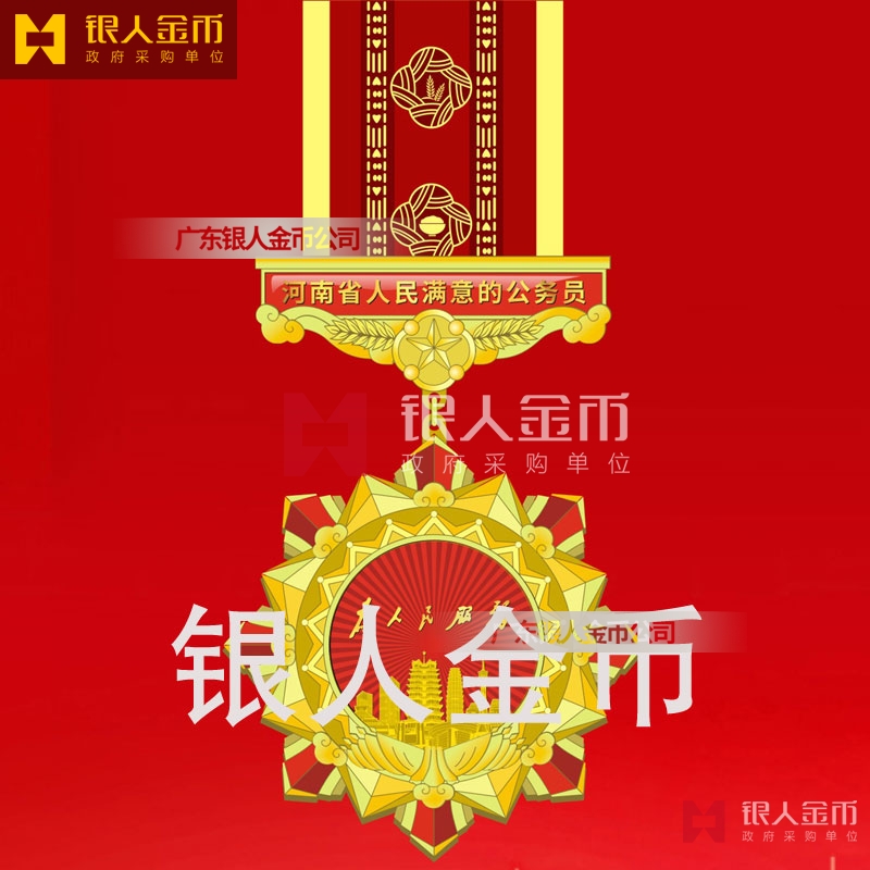 中共河南省委、河南省人民政府、中共河南省委組織部、? 河南省人民滿意的公務員獎章勛章定制_人民滿意的公務員榮譽稱號獎章勛章定做_公務員獎牌制作_公務員功勛章制作_公務員記功獎章制作