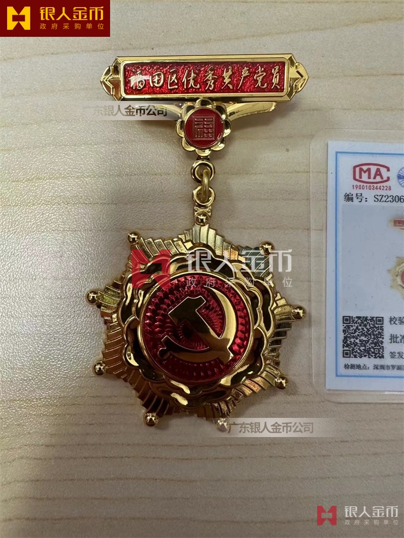 中共深圳市福田區委組織部優秀共產黨員獎章制作、獎牌制作、勛章制作、證章制作